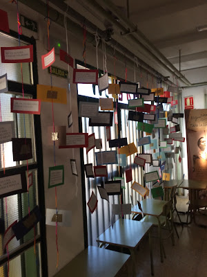 Este viernes vamos más allá, gracias a Javi, amigo y maestro de educación física, nuestro " Secre" entre muuuchaaaas cosas más. Nos ha permitido que la clase de cuarto se venga a la de tercero un ratín y que sea la clase de Pili los que les ayuden a caracterizarse.